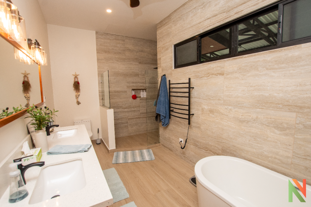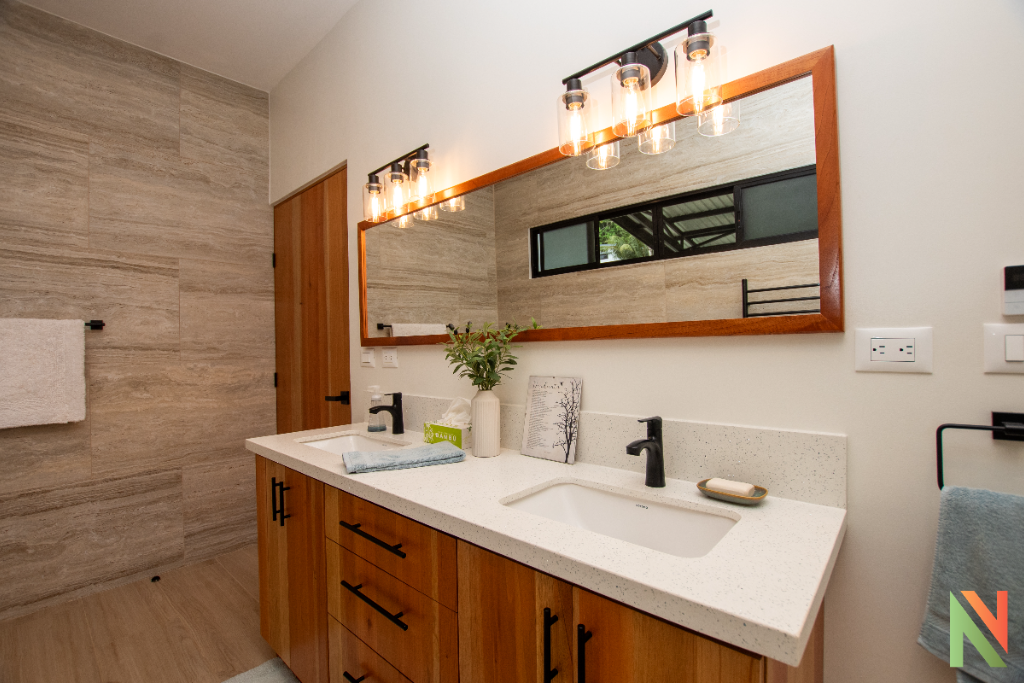 • 1 baño en cuarto principal con bañera y doble lavamanos